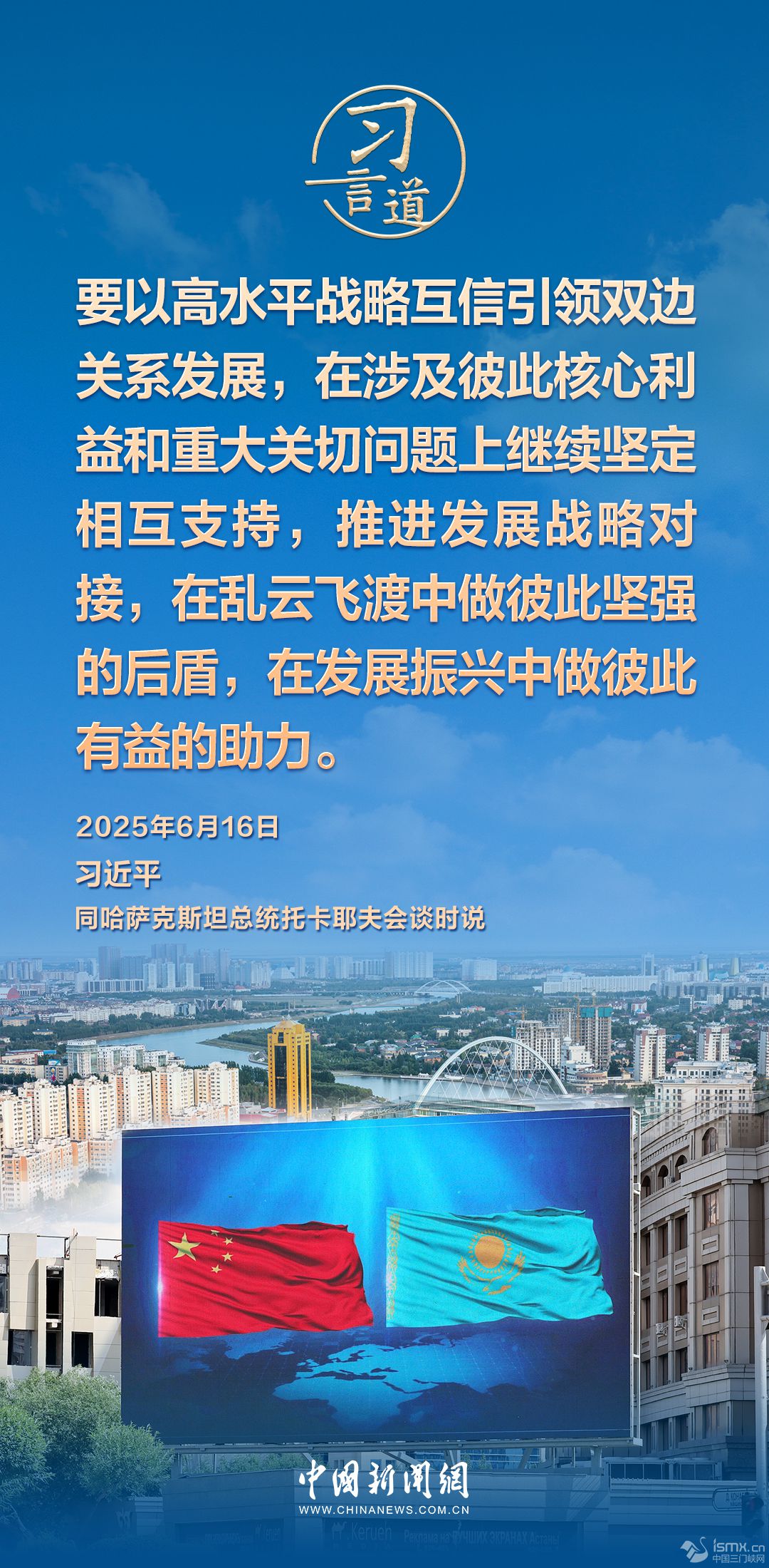 當?shù)貢r間6月16日,哈薩克斯坦總統(tǒng)托卡耶夫同中國國家主席習近平在阿斯塔納總統(tǒng)府舉行會談。習近平指出——