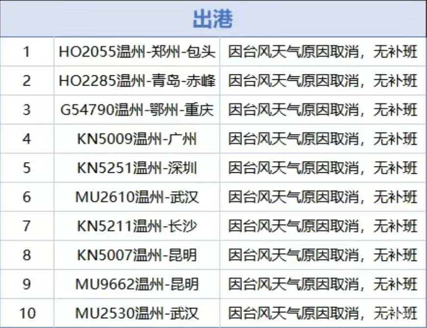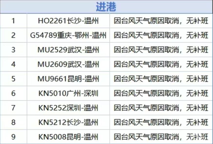 據(jù)溫州機場消息:截至今天9:00.預(yù)計今天溫州機場共計取消航班19架次其中進港9架次,出港10架次。 截至7月8日9:00統(tǒng)計的取消航班數(shù)據(jù)如下: 進港航班
