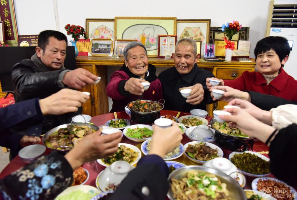 1月22日是北方農歷小年,張愛華(左二)和家人一起吃團圓飯。新華社記者朱祥 攝 暮色四合,山窩窩里的潘灣組已是萬家燈火,家家戶戶都吃上了團圓飯。大爺大娘一家人圍坐桌前,清甜的羊肉、厚實的肉糕、飄香的臘肉、精致的扣碗、火熱的燉鍋擺了滿滿一桌。此起彼伏的“新年快樂”“身體健康”和大娘即席吟誦的詩句“茅屋變成小洋樓,野菜變成魚和肉;吃喝不愁樣樣有,生活過得很滿足”激起一片歡聲笑語。 大爺驕傲地夸起兒女們。四個兒女都有自己的事業(yè),六個孫輩都是大學生,其中還有兩個是研究生。 “你們是怎么把孩子培養(yǎng)成才的?” “我怎么走路,他們就怎么走。踏踏實實,一點雨要一點濕。”大娘的話樸實卻有深意。 酒至半酣,大娘撫摸著面前一只醬色的陶制酒壺和白色酒杯,講起了往事,聲音純凈而動人。 “這套酒壺酒杯不好看,但有意思(義),我洗得很干凈。它是老領導、老紅軍劉名榜來家里吃飯時用過的。” “今天的團圓飯菜單是二女兒擬的,吃的是紅軍宴。沒有大魚大肉,都是山里菜。28個菜,代表著大別山‘28年紅旗不倒’。” “這盤野菜叫珍珠花,也叫將軍菜,當年紅軍就靠它過日子。那些豆腐乳、腌蘿卜都是我自己做的,劉名榜最愛吃。他對我說,吃席都要上,不能忘本。” 我們停下酒杯靜靜地聽,品味著這場不尋常的團圓飯。 (二)長征 天色漸明,蒙蒙細雨把大別山籠罩在一片寒冬的灰色中。張愛華換上軍綠色的解放鞋,戴上棕黃色的毛線帽,拿著鐮刀,領著大爺和兒孫們從潘灣出發(fā),開始每次團聚之后最重要的儀式——巡山。 這是張愛華一家?guī)状说?ldquo;長征”。 群山環(huán)抱的潘灣是劉名榜等先輩先烈?guī)ьI革命武裝堅守大別山“28年紅旗不倒”的核心地帶。不足兩百人的村莊,家家有烈士,戶戶有紅軍,先后有80余人壯烈犧牲,把鮮血播撒在這片紅色的群山間。