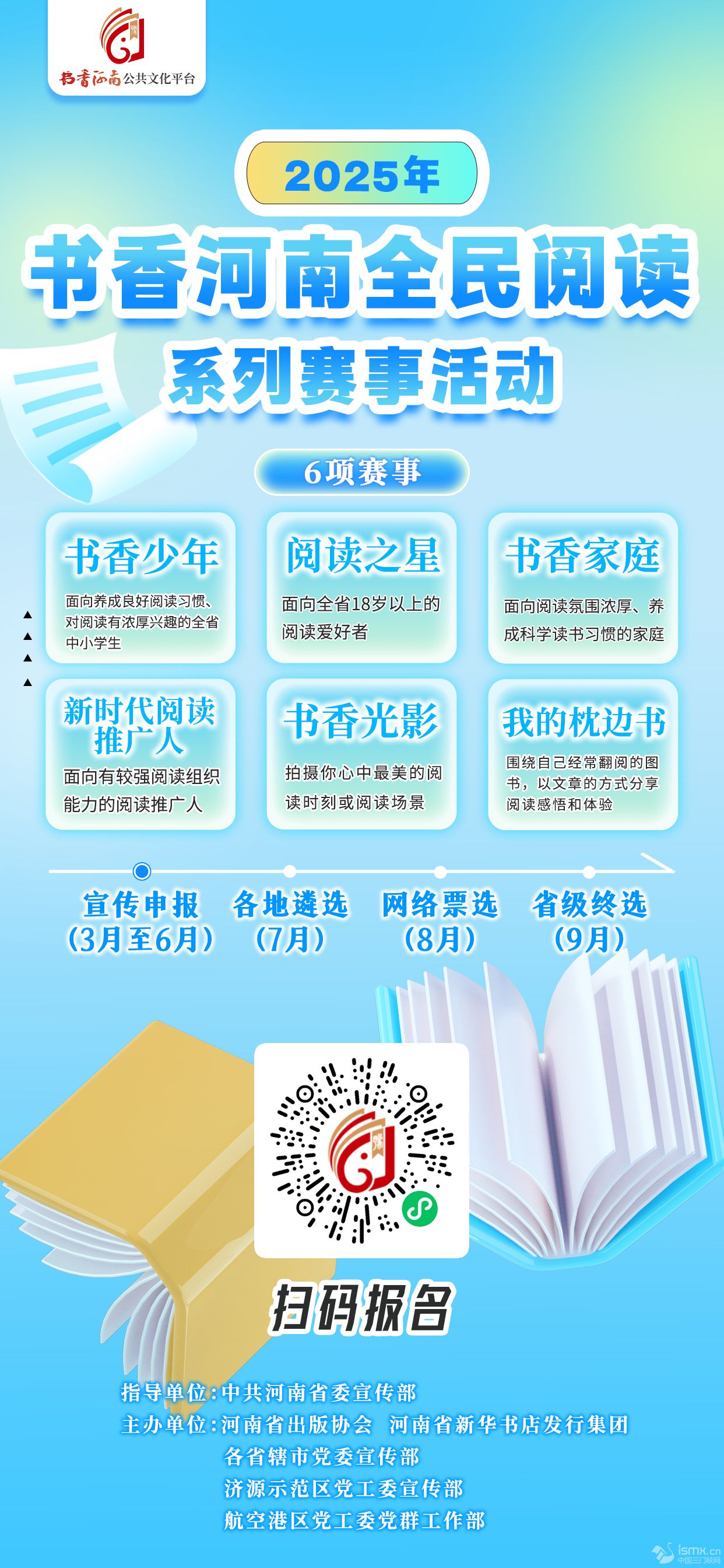 暖風迎春來,書香正濃時。3月1日,2025年書香河南全民閱讀系列賽事活動正式啟動。這場浸潤著文化馨香的春日閱讀之約,既是推進“書香河南”建設的具體實踐,更是深化文明創(chuàng)建、實現(xiàn)文化惠民的重要舉措;顒油ㄟ^搭建全民閱讀平臺,讓閱讀在書香浸潤中生根發(fā)芽。 本次活動由中共河南省委宣傳部指導,河南省出版協(xié)會、全省新華書店、各省轄市黨委宣傳部、濟源示范區(qū)黨工委宣傳部、航空港區(qū)黨工委黨群工作部主辦,依托全省工會、團委、婦聯(lián)、教育等部門,有效利用實體書店、城市書房、新時代文明實踐中心、農(nóng)家(社區(qū)、職工)書屋、各級圖書館、基層公共文化空間,面向全省開展。2025年書香河南全民閱讀系列賽事活動包括“書香少年”“閱讀之星”“書香家庭”“新時代閱讀推廣人”“書香光影”“我的枕邊書”六大賽事活動,覆蓋不同年齡、職業(yè)和群體,構建“全齡參與、全域覆蓋”的閱讀推廣體系。 面向全省各界人士進行賽事評選。具體評選標準如下: “書香少年”評選活動。在全省中小學生中組織開展,對閱讀有濃厚興趣,在班級和學校閱讀活動中起帶頭作用;積極參與各類讀書活動,表現(xiàn)出色,成績優(yōu)異;堅持閱讀并形成良好習慣,喜歡與別人交流讀書感受,表達觀點;積極撰寫讀書筆記,篇幅多、質(zhì)量好。 “閱讀之星”評選活動。在全省18歲以上的閱讀愛好者群體中組織開展;年度閱讀量不得低于2024年全國人均閱讀量水平,積極進取,因讀書而改變命運、取得顯著成績,特別是來自基層、身處艱苦環(huán)境的讀書人;熱愛推廣閱讀,服務和帶動他人讀書,事跡突出的人;讀書、藏書,將閱讀作為一種生活方式,能夠通過閱讀陶冶性情、完善人格,人生態(tài)度積極、社會形象正面的人;有較為突出的讀書成果或公開出版?zhèn)人著作;在社區(qū)乃至社會有較為廣泛的影響。 “書香家庭”評選活動。在全省范圍內(nèi)組織開展;熱愛閱讀,具有良好的讀書習慣;家庭有一定的支出用于購買書籍、訂閱報刊等;家庭有一定數(shù)量的藏書;家庭成員年閱讀量均高于全國人均水平,均具有較高綜合素養(yǎng);家庭有熱愛讀書的傳統(tǒng)和崇尚讀書、向上向善的家風家教,形成了相對行之有效的閱讀經(jīng)驗;家庭成員參與閱讀公益事業(yè),積極帶動鄰里參與閱讀,均具有一定的傳播度和影響力,起到示范作用。 “新時代閱讀推廣人”評選活動。在全省范圍組織開展;能夠創(chuàng)新閱讀內(nèi)容和活動方式,有較強的活動組織能力和帶頭作用,組織、參與的群眾性、社會性和經(jīng)常性讀書活動成效顯著;在宣傳讀書活動、營造全民讀書氛圍、促進公眾科學文化素養(yǎng)提高等方面作出突出貢獻;從事閱讀推廣工作滿三年以上。 “書香光影”評選活動。深入全省讀書活動現(xiàn)場、城鄉(xiāng)基層和廣大讀者中組織開展;緊扣書香河南全民閱讀主題,明確展現(xiàn)“書籍”或“閱讀”,包括個人閱讀時刻(如書店、圖書館內(nèi)的場景,以及書籍與自然環(huán)境的融合等),書籍與個人生活、社會文化的故事,或?qū)、書店、書屋的情感表達等;充分反映各地、各單位、各部門開展全民閱讀活動的亮點和特色,全方位展現(xiàn)積極推進書香河南建設的做法和成效。 “我的枕邊書”評選活動。在全省小學生、中學生、大學生及職工群體中組織開展;圍繞自己經(jīng)常翻閱的圖書,分享自己的閱讀感悟與體驗,著重描繪在購買、閱讀及分享圖書中發(fā)生的動人故事,說明該書對自己身心成長的影響。 活動報名流程