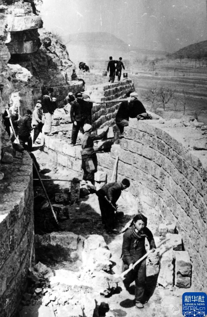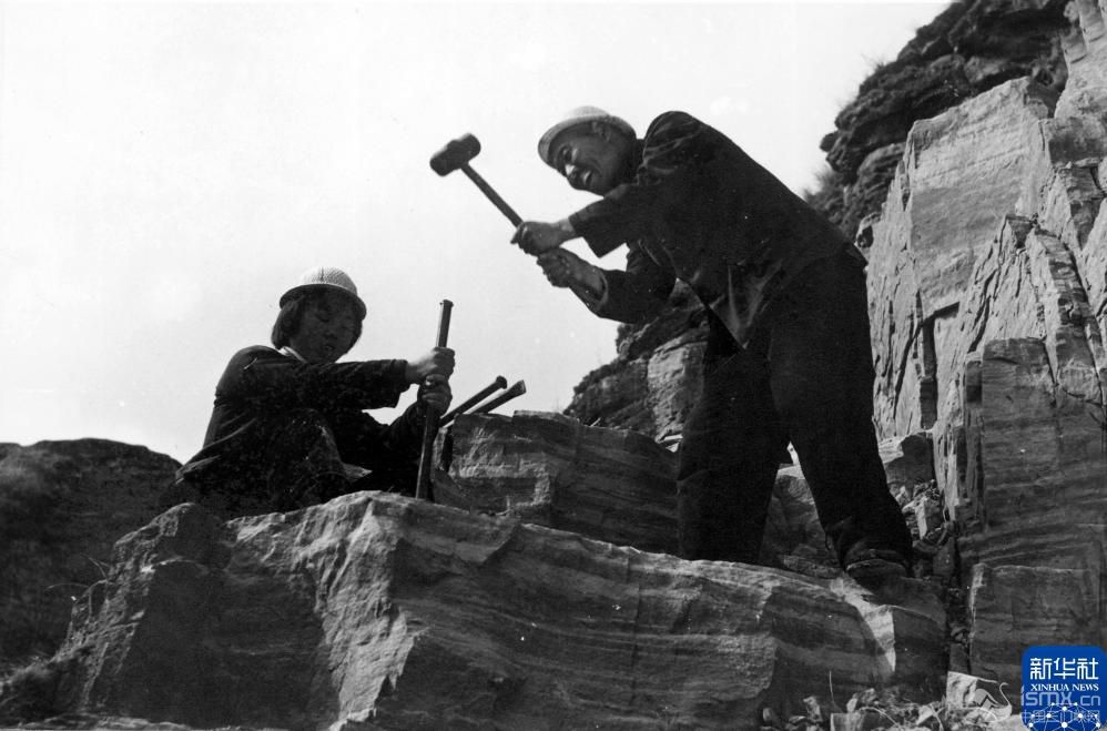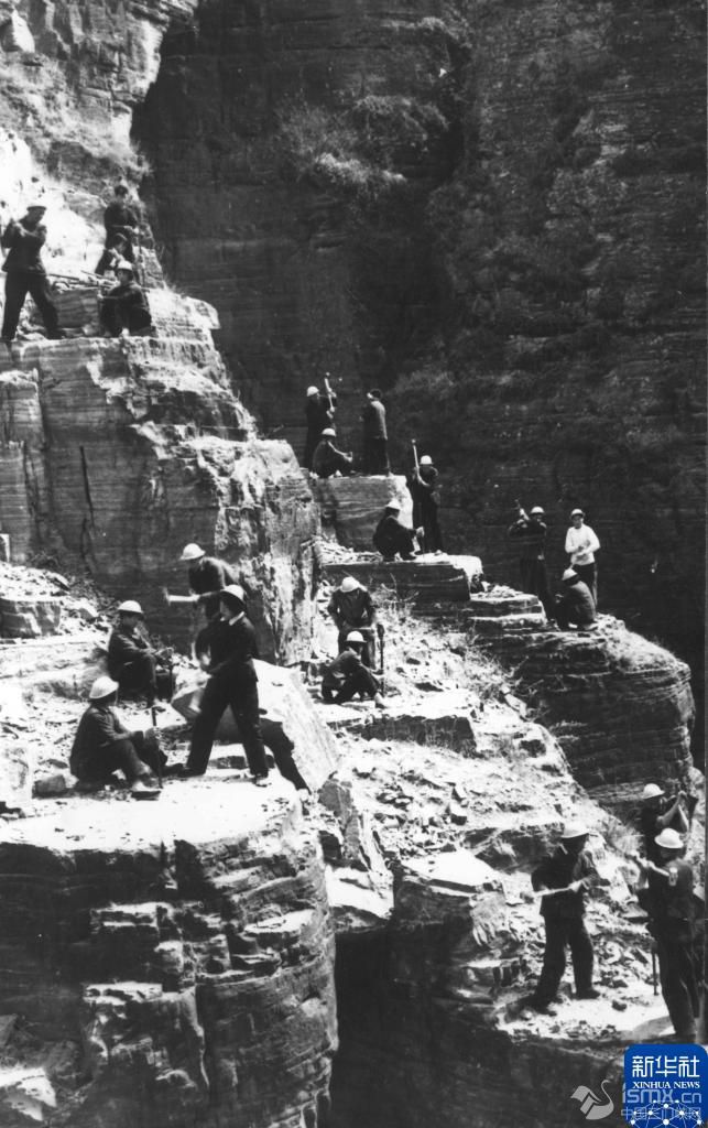 紅旗渠的施工場面(資料照片)。新華社發(fā)