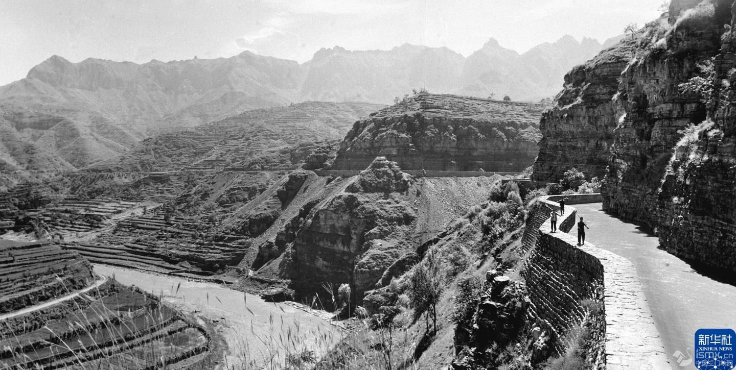 紅旗渠施工時,人們在渠上作業(yè)(資料照片)。新華社發(fā) 八百里太行壁立千仞 三千里渠水逶迤綿延 滋潤著這片土地 浸潤著百姓心田