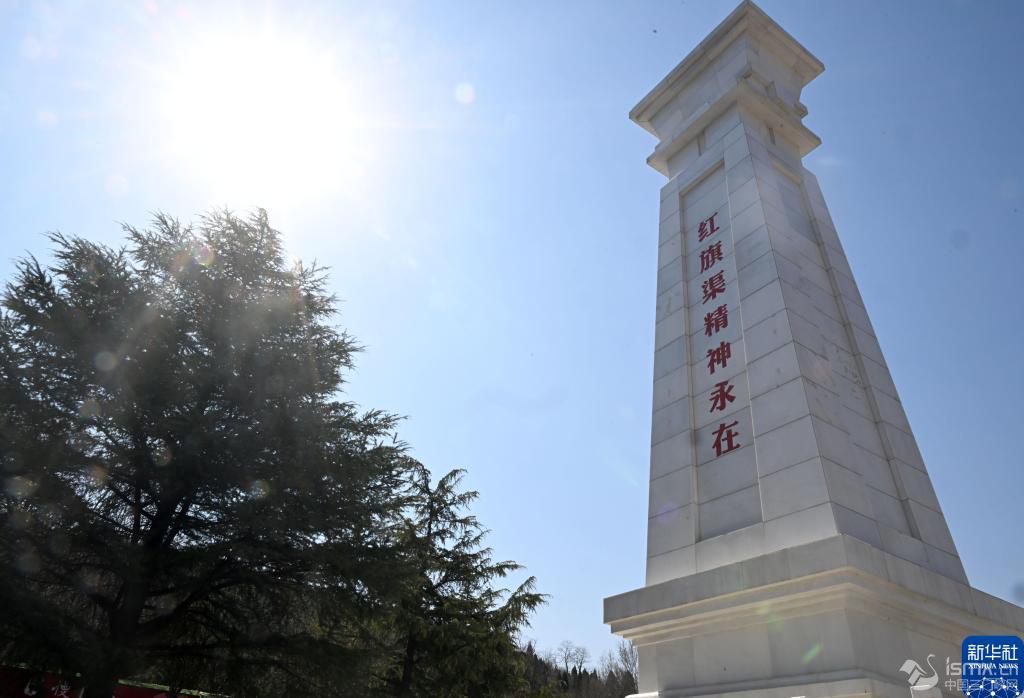2025年3月18日拍攝的紅旗渠紀(jì)念碑。新華社記者 李嘉南 攝 紅旗渠青年洞旁 鐫刻著“山碑”二字的石壁巍峨聳立 吸引著幾乎每一位游客駐足凝望