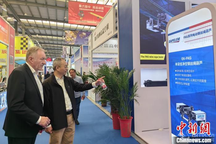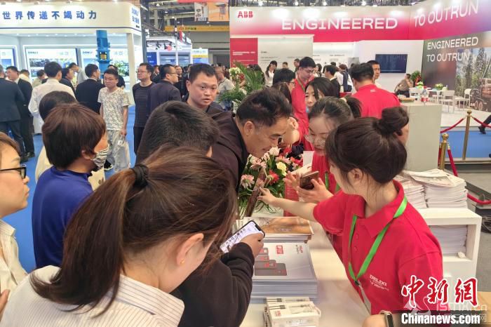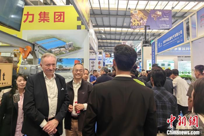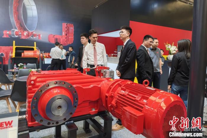 圖為外籍參會(huì)人員在展廳了解產(chǎn)品信息。中新社記者 劉鵬 攝
