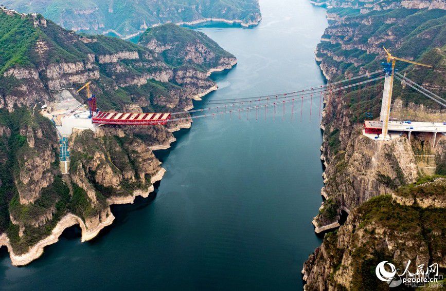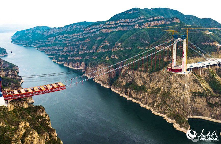 4月24日,河南省濟源至新安高速公路項目的重要控制性工程——濟新黃河大橋施工現(xiàn)場,工人正在緊張架設(shè)鋼桁梁。大橋計劃6月底鋼梁合龍,2025年底建成通車。 濟新黃河大橋是世界首創(chuàng)的獨塔地錨式回轉(zhuǎn)纜懸索橋,也是世界上跨徑最大的回轉(zhuǎn)纜懸索橋,塔高109米,跨度555米。同常規(guī)懸索橋相比,大橋僅一座主塔和一根長1613米的主纜支撐整個橋體,在黃河北岸經(jīng)過水平轉(zhuǎn)向索鞍錨固,實現(xiàn)180度回轉(zhuǎn)后,再繞過主塔塔頂,最后兩端同時錨固在黃河南岸的錨碇上。 這種設(shè)計方案契合了兩岸地形,實現(xiàn)了對周邊環(huán)境破壞的最小化、對兩岸崖壁地質(zhì)遺跡保護的最大化,體現(xiàn)了“源于環(huán)保、始于錨碇、樞于主纜、終于橋型”的設(shè)計、建造理念。 這一高速公路項目通車后,黃河兩岸路程可從兩小時縮短到二十分鐘,極大方便群眾出行。項目與新伊、菏寶、連霍等高速公路相連,進一步完善河南省高速公路網(wǎng)絡(luò),對增強鄭州都市圈、洛陽副中心城市輻射能力、整合區(qū)域旅游資源、拉動黃河兩岸經(jīng)濟發(fā)展、推動黃河流域生態(tài)保護具有重要意義。