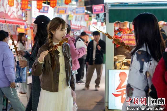 10月22日晚,河南南陽仲景市集煙火繚繞,來自東北的鍋包肉、新疆的烤串、云南的昆蟲宴等天南地北的特色小吃在此同臺競味,吸引眾多市民前來嘗鮮,品嘗跨越山河的南北風味。