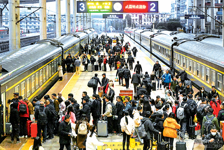 1月25日,旅客從湖北省武昌火車站乘車。 1月25日,春運迎來節(jié)前客流高峰。來自交通運輸部數(shù)據(jù)顯示,當日全社會跨區(qū)域人員流動量預計超2.7億人次。 新華社發(fā) ( 編輯:tln ) |